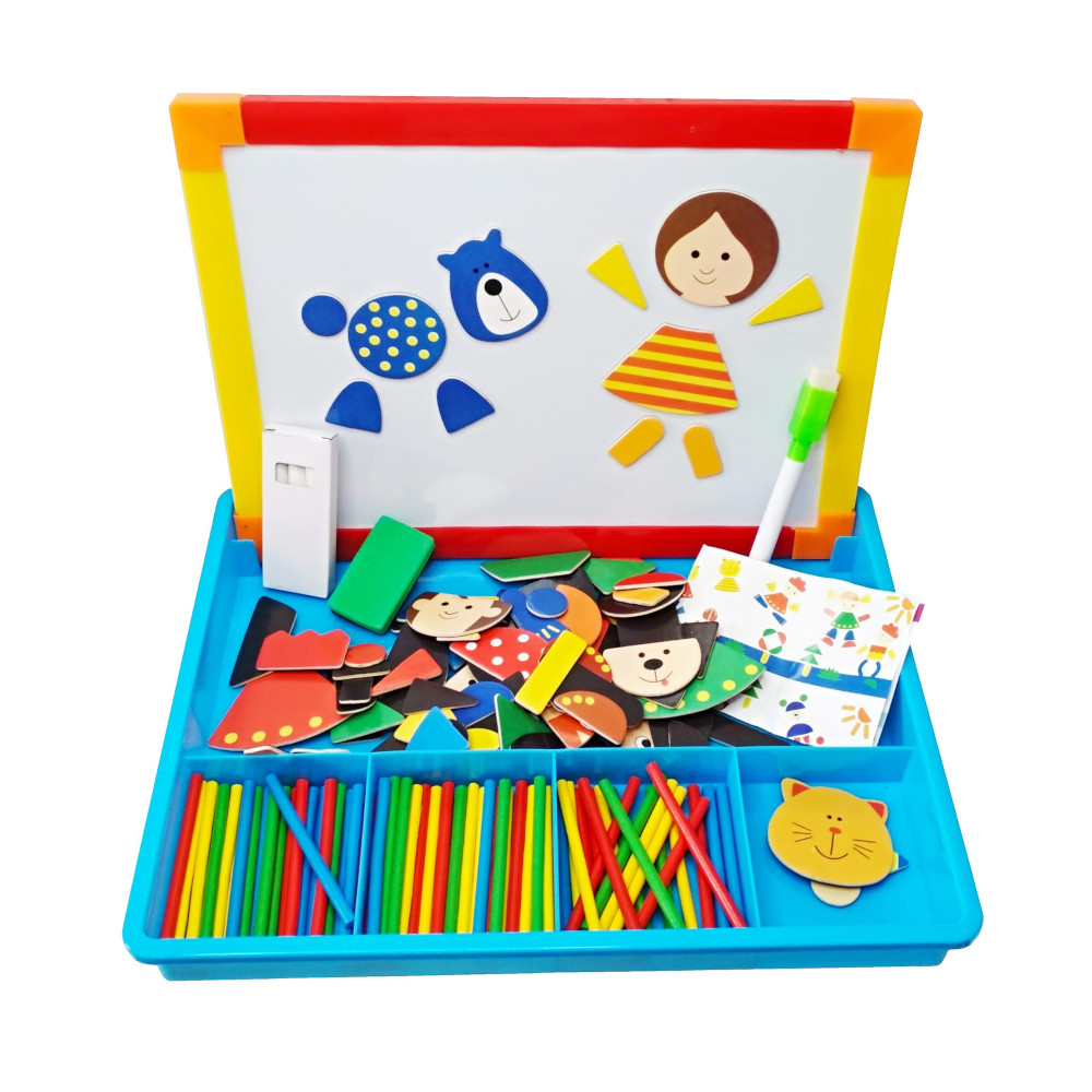 - Περιλαμβάνει επίσης ξυλάκια αριθμητικής,μαρκαδόρο και σφουγγάρι.